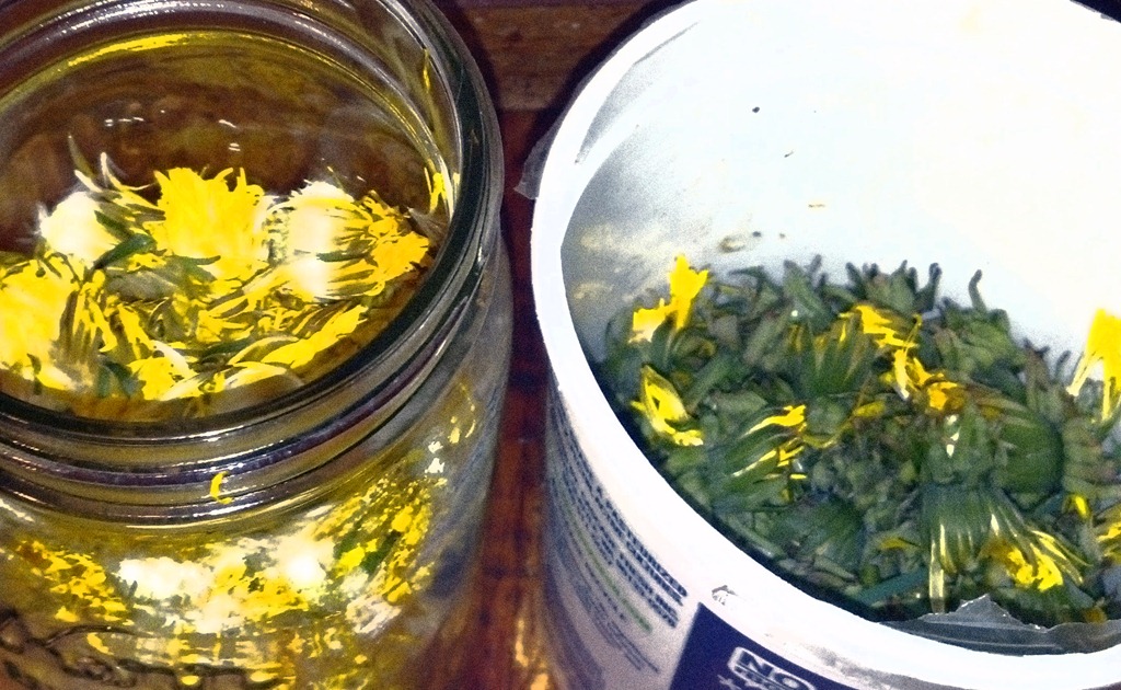 The other day I ran across a recipe for dandelion jelly on Langdon Cook’s excellent foraging website, Fat of the Land. I was kinda toying with doing up a batch but didn’t know where to find the dandies and was concerned about them not having been sprayed with pesticides. Lo and behold, this week’s photoshoot was at an old orchard site, and there were dandies everywhere. It took me about 5 minutes to gather up a bag of heads, which then had to be cleaned, which took another 10 minutes or so.